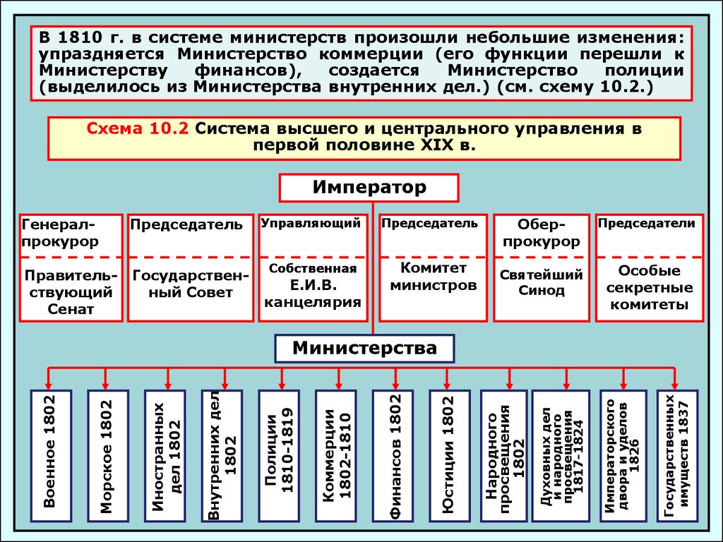 Наступление девятнадцатого столетия принесло в Россию реформы государственного управления: по вступлении на престол молодой император Александр I создал Государственный совет («Непременный совет»), шла активная работа над новыми законами, но требовалась и новая управленческая система, способная оперативно решать множество нарастающих проблем государственной политики. 8 сентября 1802 г. Александр I подписал манифест «Об учреждении министерств». Ещё тогда император-реформатор подчеркивал, что «мы ожидаем от них верности, деятельности и усердия ко благу общему…».