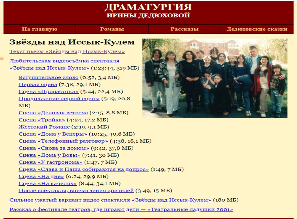 Здесь придется объясниться, что в 2001 году я прочла на сайте Григория Заславского статью Рассказ о фестивале театров, где играют дети — «Театральные ладушки 2001». Ну, это когда нашу ИАД дружно прокатили с ее драматургией. Но каково же было мое удивление, что потом на «взрослой сцене» полезло все то негативное, отмеченное в ее давней статье, что тогда при ней обкатывалось на детях. Там уже и в античности выделялась… нетрадиционная ориентация, уже было вполне некрофильское отношение к Великой Отечественной войне («а детей убивают!»), попытки возродить тягомотину «шестидесятников», проживших свою «жизнь замечательных людей»…