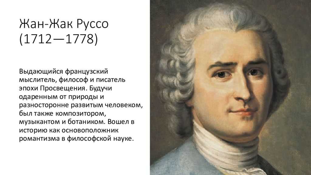 Новым этапом в развитии французского Просвещения XVIII в. была деятельность Жан Жака Руссо (1712—1778), идеолога революционной мелкой буржуазии. Его идеи, выраженные в произведениях «Способствовало ли восстановление наук и искусств улучшению или ухудшению нравов», «О причинах неравенства», «Об общественном договоре, или принципы политического права» и др., оказали впоследствии, в период Французской революции 1789—1794 гг., значительное влияние на якобинцев, провозгласивших Руссо своим идейным предшественником. Пройдя суровую жизненную школу, Руссо с детства видел страдания народа. Его произведения проникнуты ненавистью к угнетателям, страстной критикой современного ему общественного и государственного строя, социального неравенства, уродливого воспитания. Он обличает лицемерную, враждебную интересам народа мораль, фальшивое искусство и официальную науку.