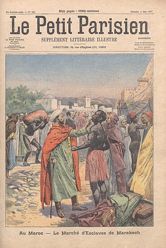В 1883 году британское министерство иностранных дел официально предложило Марокко запретить работорговлю, но Марокко отказалось вводить такой запрет.[29] В конце XIX века султан Марокко заявил западным дипломатам, что он не может запретить рабство, потому что такой запрет будет трудно обеспечить, но британцы попросили его хотя бы сделать так, чтобы работорговля в Марокко велась тайно и вдали от глаз иностранных свидетелей.[30] В 1884 году британское и французское правительства запретили своим гражданам и служащим в Марокко владеть рабами.[29]