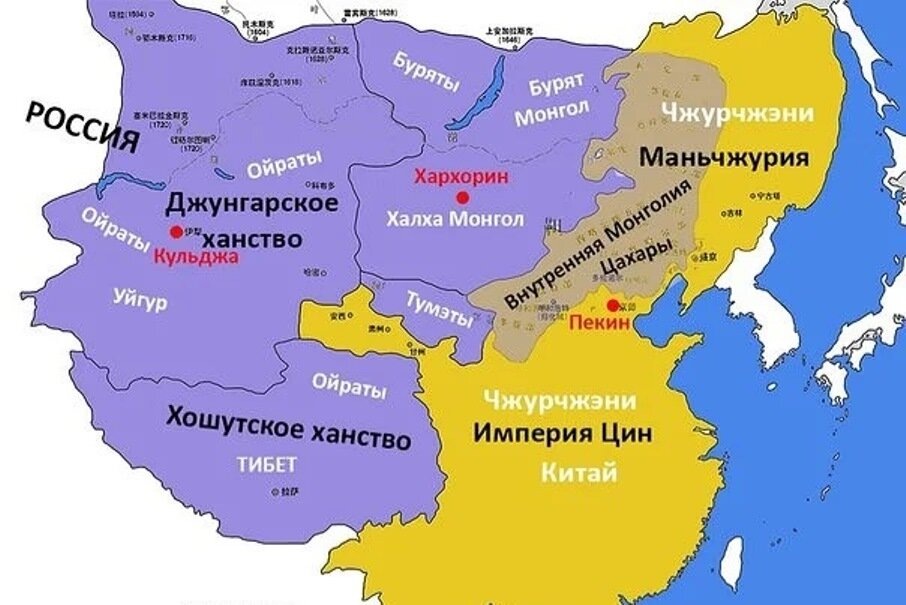 В первой половине XVIII века в результате второй ойрато-маньчжурской войны Джунгарскому ханству удалось вернуть часть владений в Монголии, однако в середине XVIII века маньчжуро-монгольские войска уничтожили Джунгарское ханство, включив все населённые монголами земли в состав Цинской империи.