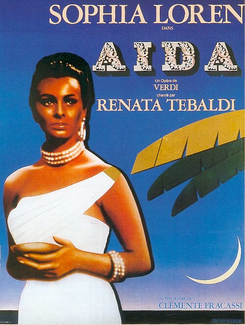 В 1953 г. опера была экранизирована в постановке режиссера К. Фракасси с участием С. Лорен в роли Аиды (поет Р. Тебальди).
