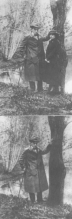 Фото 1918 года с Лилей Брик и оно же после ретуши в 1960-х годах