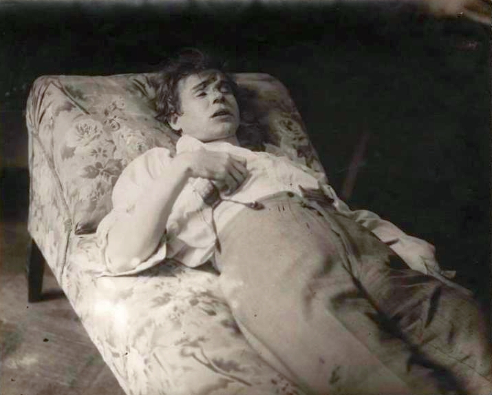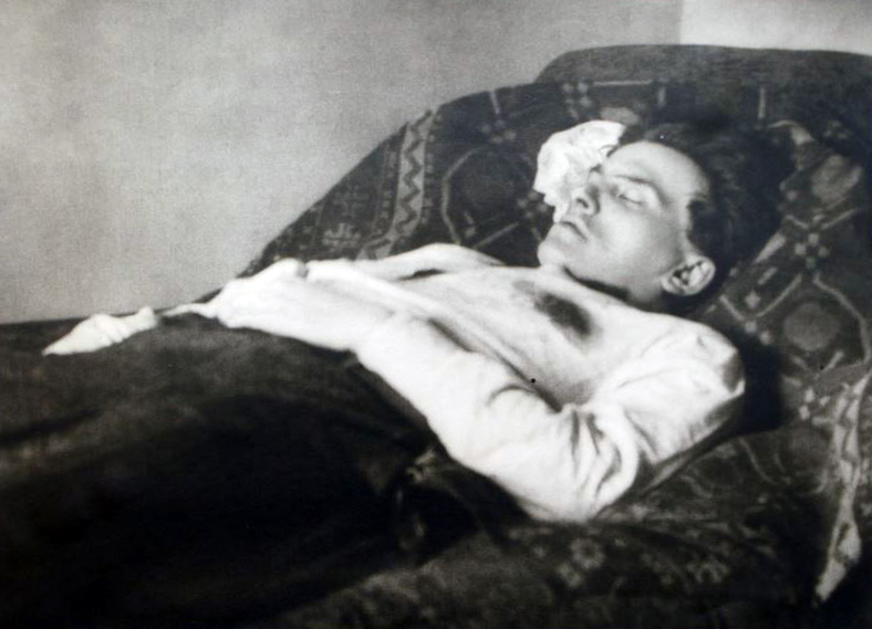 Я не могла опоздать, это злило Владимира Владимировича. Он запер двери, спрятал ключ в карман, стал требовать, чтобы я не ходила в театр, и вообще ушла оттуда. Плакал… Я спросила, не проводит ли он меня. «Нет»,— сказал он, но обещал позвонить. И ещё спросил, есть ли у меня деньги на такси. Денег у меня не было, он дал двадцать рублей… Я успела дойти до парадной двери и услышала выстрел. Заметалась, боялась вернуться. Потом вошла и увидела ещё не рассеявшийся дым от выстрела. На груди Маяковского было небольшое кровавое пятно. Я бросилась к нему, я повторяла: «Что вы сделали?…» Он пытался приподнять голову. Потом голова упала, и он стал страшно бледнеть… Появились люди, мне кто-то сказал: «Бегите, встречайте карету „Скорой помощи“»… Выбежала, встретила. Вернулась, а на лестнице мне кто-то говорит: «Поздно. Умер…»