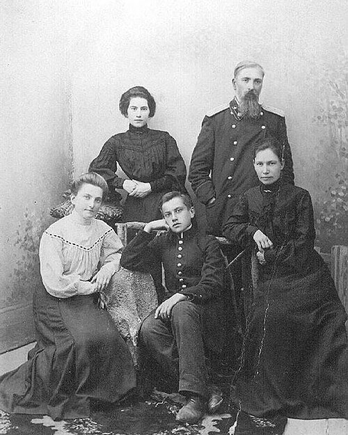Родился 19 июля 1893 года в грузинском селе Багдади[8] Кутаисской губернии Российской империи, в обедневшей дворянской семье[9]. Отец — Владимир Константинович Маяковский (1857—1906), служил лесничим третьего разряда в Эриванской губернии, а с 1889 года — в Багдатском лесничестве; Маяковский вёл род от запорожских казаков, прадед отца поэта был полковым есаулом Черноморских войск, что дало ему право получить дворянство[10]. Мать — Александра Алексеевна Павленко (урождённая Афанасьева; 1867—1954), из рода кубанских казаков, родилась на Кубани в станице Терновской, была наполовину русской, наполовину украинкой. В поэме «Владикавказ — Тифлис» 1924 года Маяковский называет себя «грузином». О себе сказал в 1927 году: «Родился я в 1894[11] году на Кавказе. Отец был казак, мать — украинка. Первый язык — грузинский. Так сказать, между тремя культурами» (из интервью пражской газете «Prager Presse»)[12]. Бабушка по отцовской линии, Ефросинья Осиповна Данилевская, — двоюродная сестра автора исторических романов Г. П. Данилевского, родом из запорожских казаков. У Маяковского было две сестры: Людмила (1884—1972) и Ольга (1890—1949) и два брата: Константин (умер в трёхлетнем возрасте от скарлатины) и Александр (умер во младенчестве).