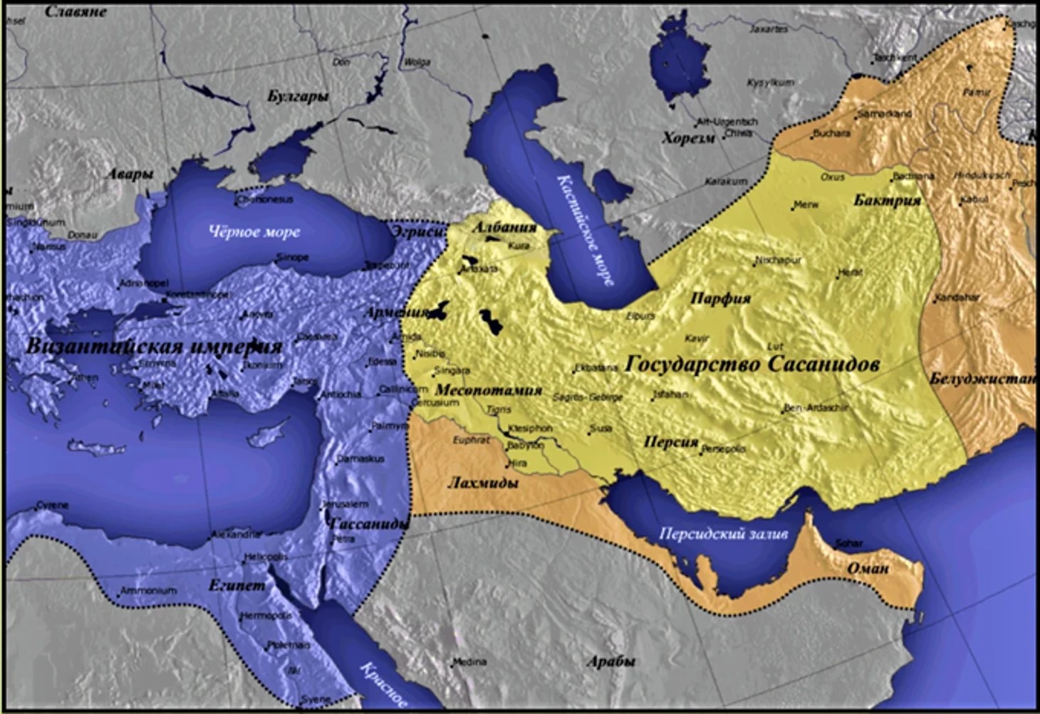 Сасанидская империя (официально Эраншахр, «Империя иранцев«), была иранской империей, которая была основана и управлялась Домом Сасанов с 224 по 651 год нашей эры. Династия Сасанидов правила древним Ираном более четырёх столетий, уступая по продолжительности правления только непосредственно предшествовавшей династии Аршакидов в Парфии.[11][12]