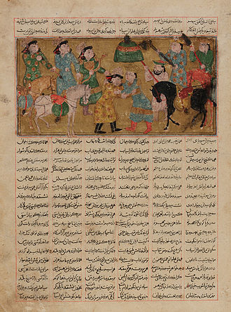 Герой Пиран встречает принца Сиявуша. Неизвестный автор, начало XIV века