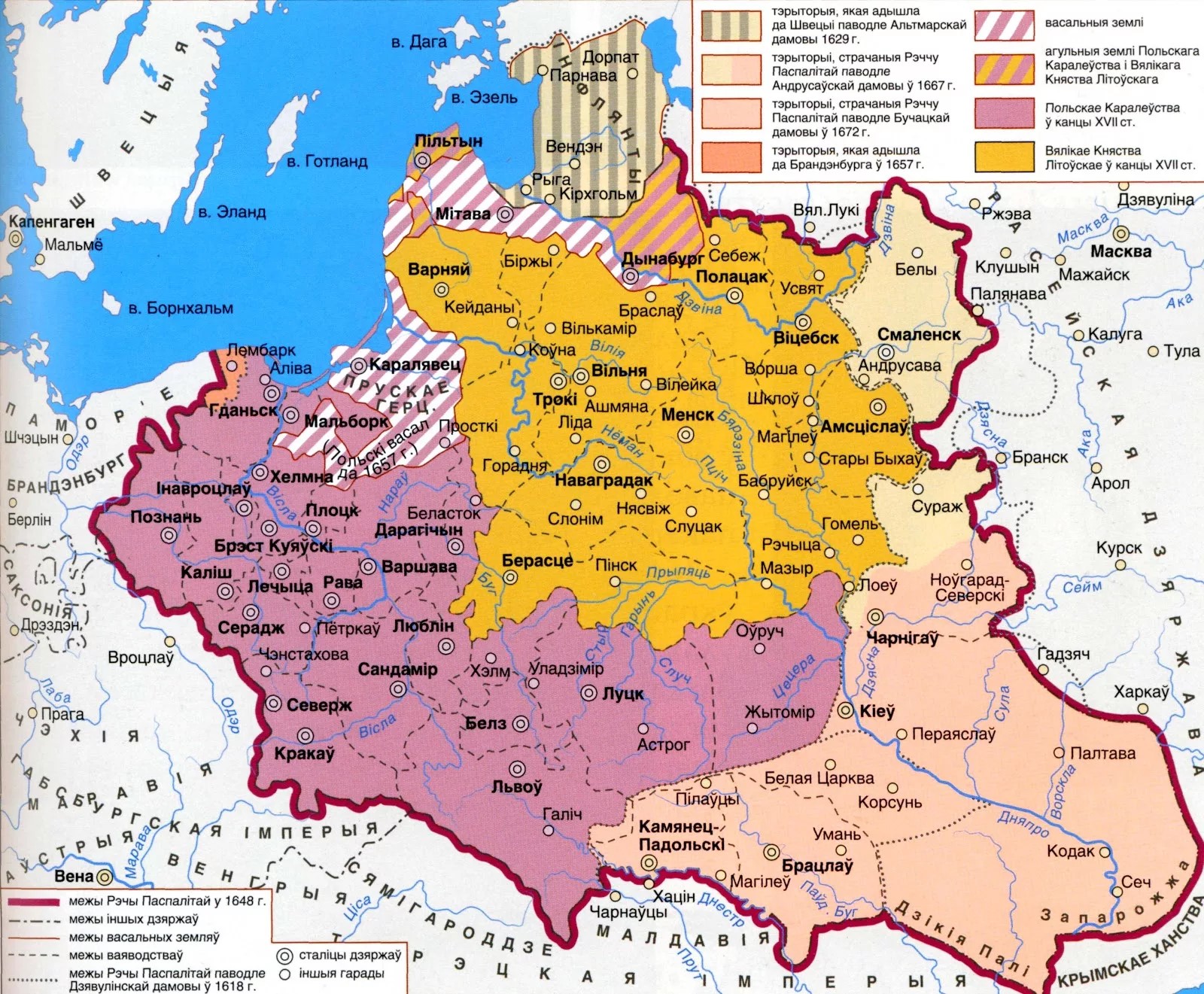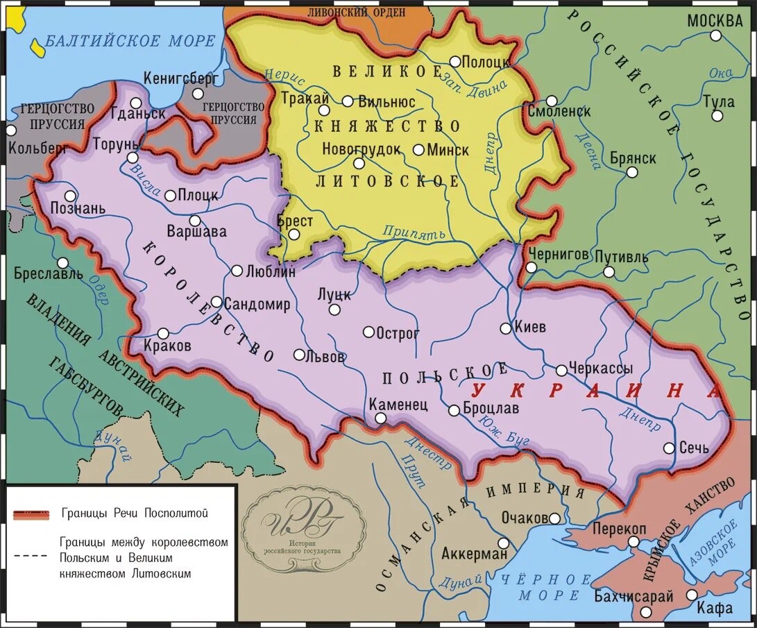 Со времени Люблинской унии 1569 г. Великое княжество Литовское в состав которого входили Литва, украинские и белорусские земли, было объединено с Польшей. Польские феодалы, выдвинувшие идею унии с Литвой, стремились добиться безоговорочного подчинения Великого княжества Литовского своей власти. Однако осуществить это полностью они не смогли. Несмотря на общий с Польшей сейм и наличие единого короля, княжество Литовское сохраняло свою администрацию. Оно имело особого гетмана, командовавшего войском, канцлера и казначея; население подчинялось своим особым законам и судилось своим судом. Но княжество Литовское являлось составной частью Речи Посполитой, и его судьбы были тесно сплетены с судьбами этого государства.