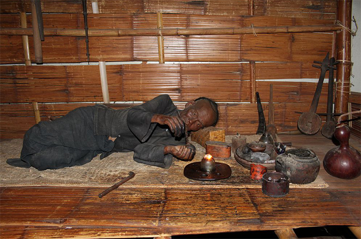 Вместе с тем «тёмные стороны» потребления опиума тоже представлены в экспозиции: на картинах и фотографиях можно увидеть жуткую атмосферу опийных курилен, а восковые фигуры курильщиков опиума способны повергнуть в ужас.
